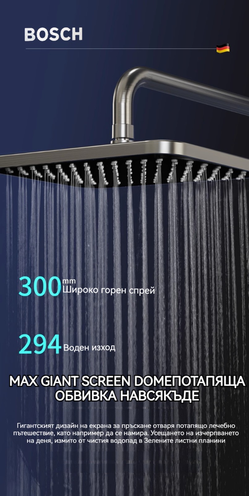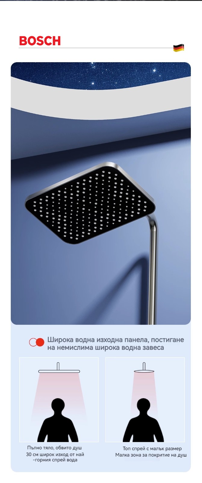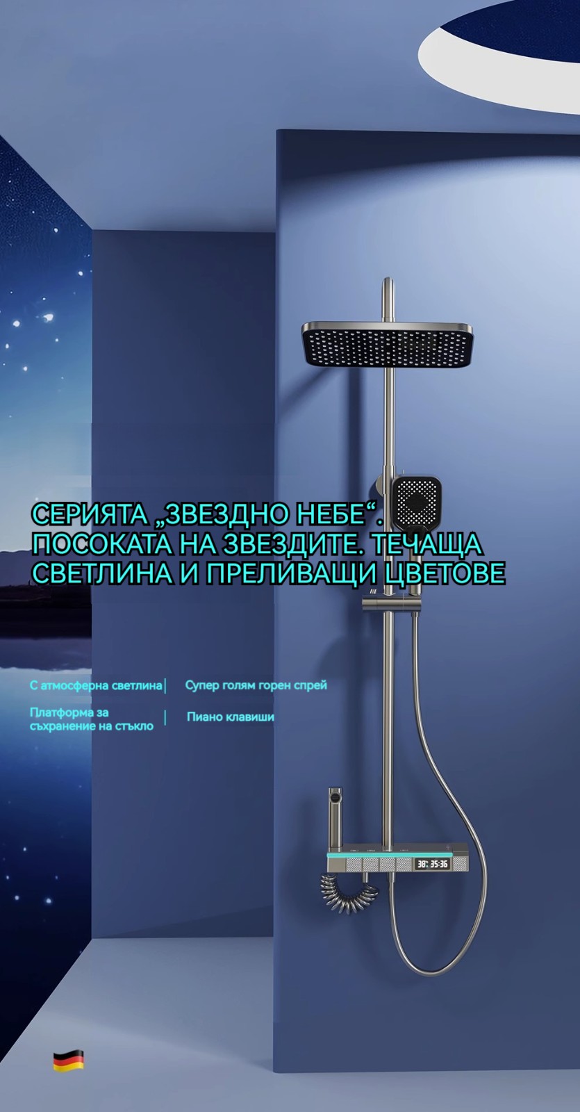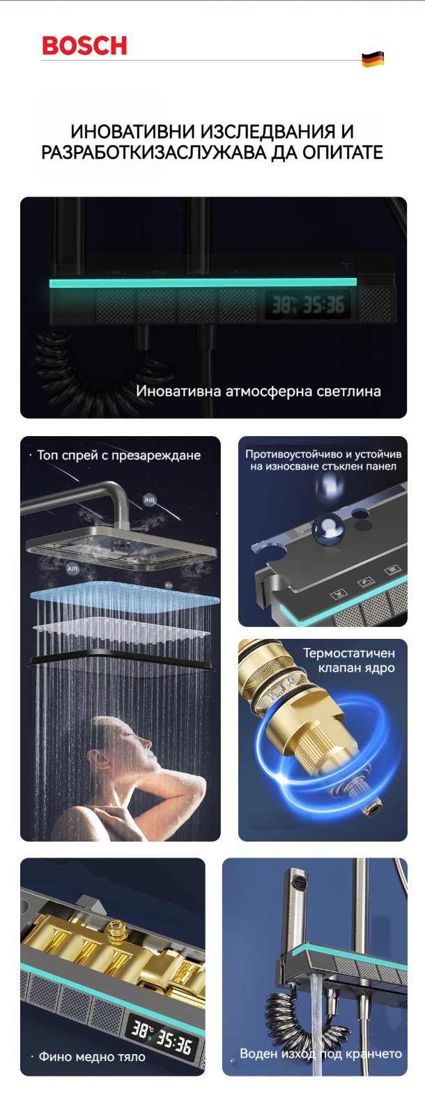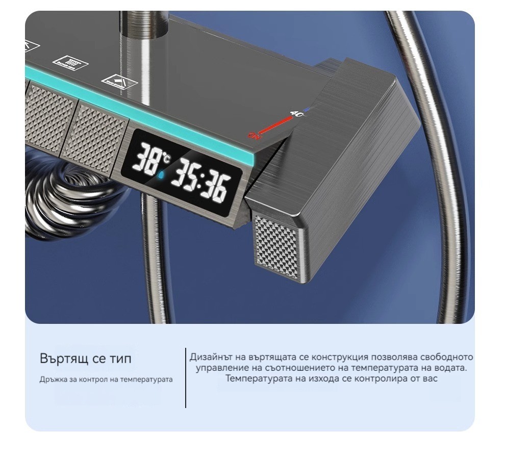 Голямата душ група е най -новата технология за автоматично управление на температурата. Той е оборудван с пречиствател за вода, ограничена цена от ограничено време и директните продажби на производителите