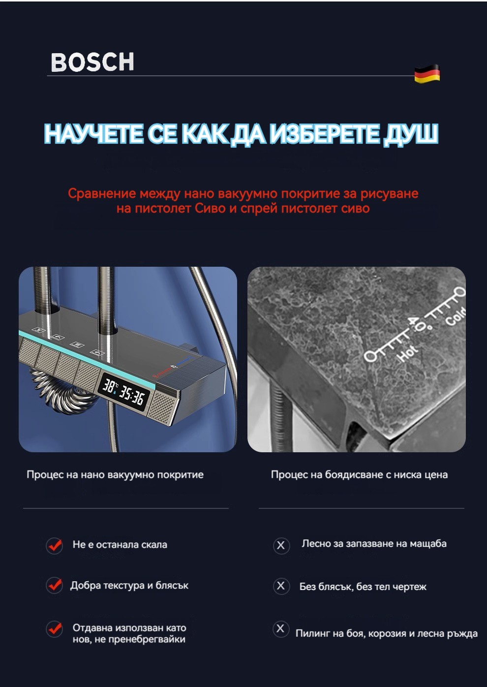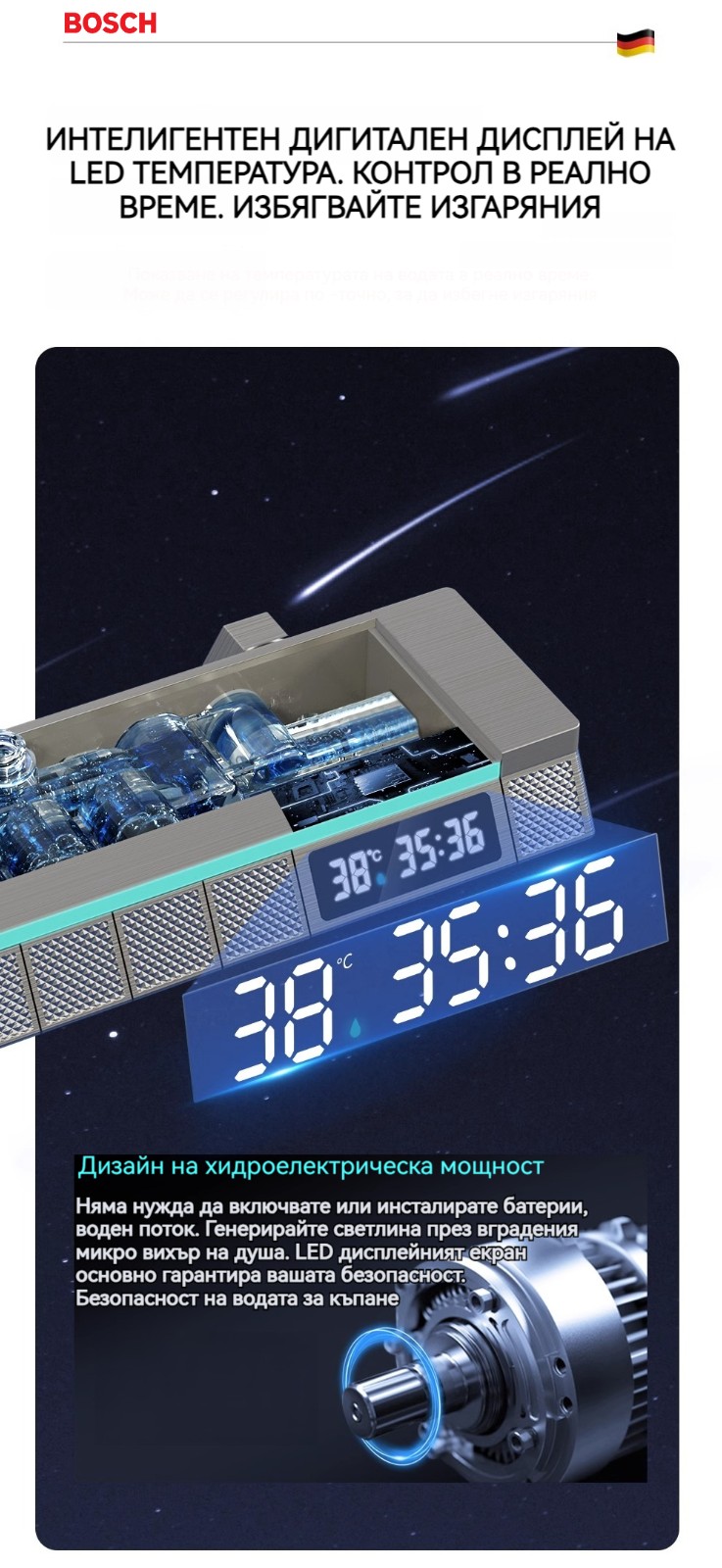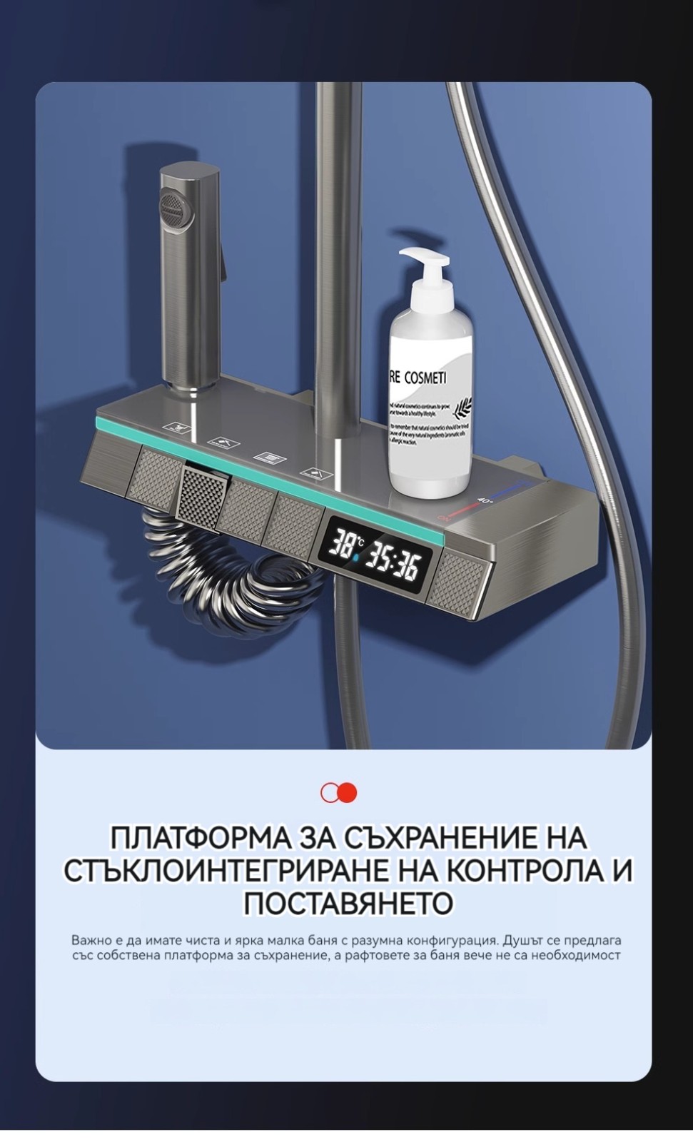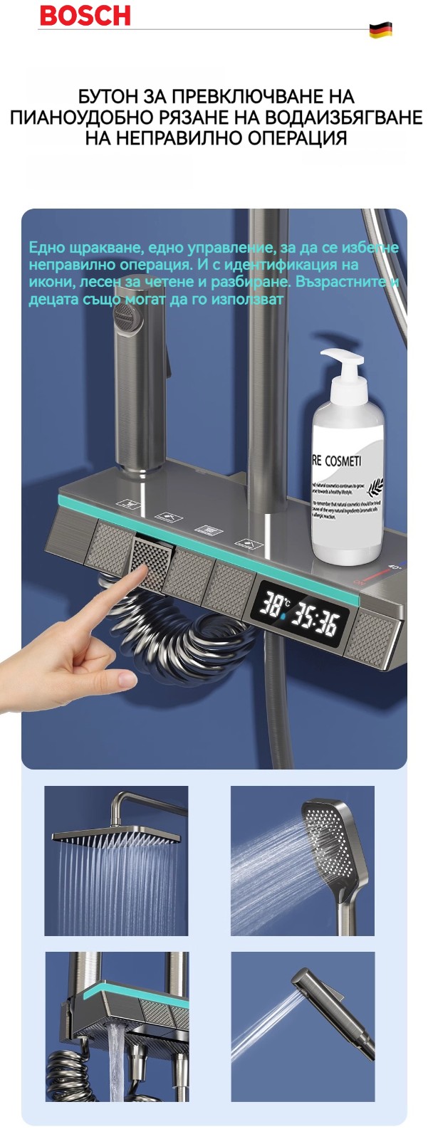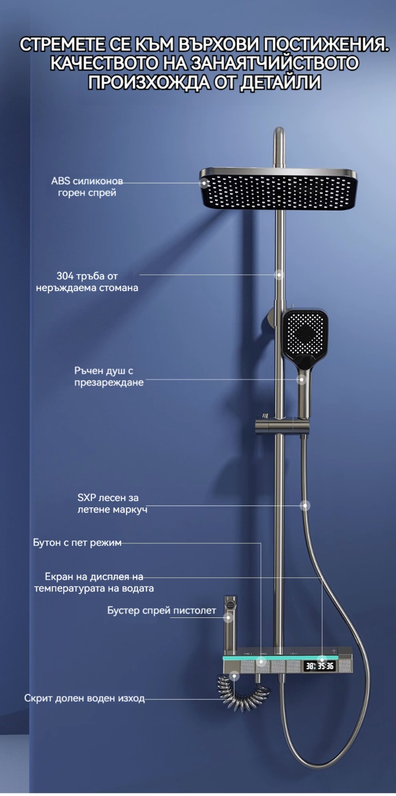 Голямата душ група е най -новата технология за автоматично управление на температурата. Той е оборудван с пречиствател за вода, ограничена цена от ограничено време и директните продажби на производителите